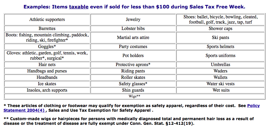 If you’ve been waiting all year for Connecticut’s Sales Tax Free Week to purchase that new lobster bib or athletic supporter, you’re going to be disappointed.