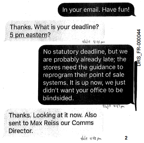 Time was of the essence at that point, as the new tax rate was set to take effect on October 1, 2019 and grocery store owners had to update barcodes to reflect the tax and remain in compliance.