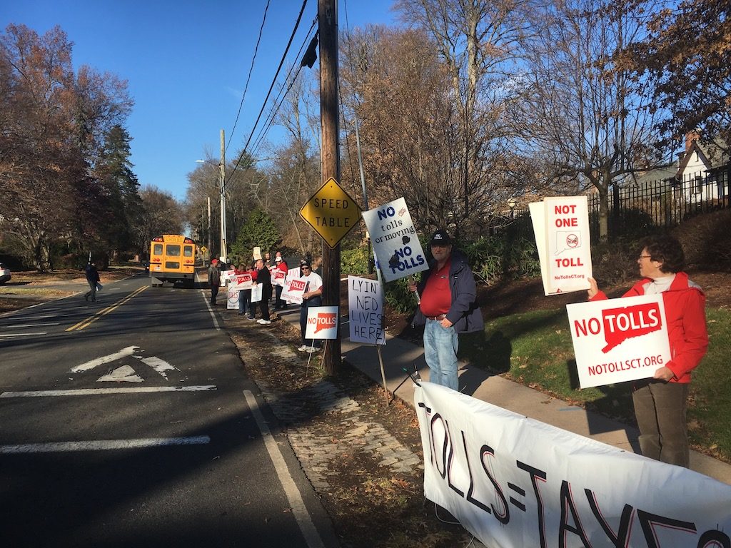 Outside the governor’s mansion, Patrick Sasser of No Tolls CT said that truck-only tolls would quickly become tolls for cars.