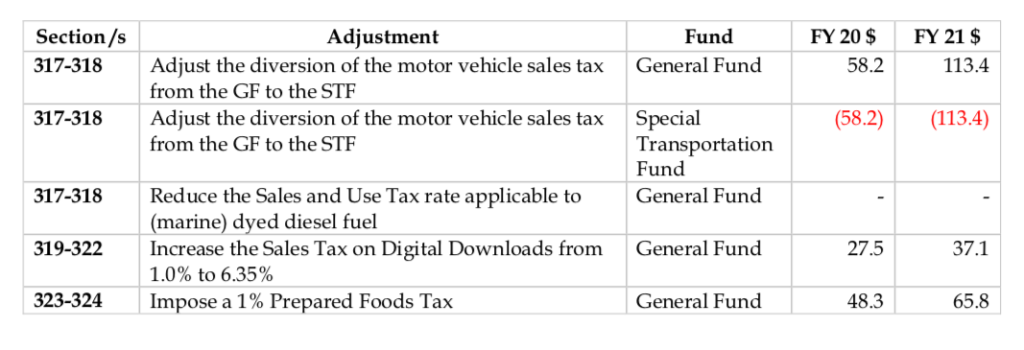 Because vehicle sales tax revenue is deposited first into the General Fund and then transferred to the Special Transportation Fund, leadership and the governor can claim they are still putting money into transportation – just not as much as the 2017 budget had allocated – and they can say that all the vehicle sales tax revenue will eventually be put into the STF, provided there are no future budget changes.