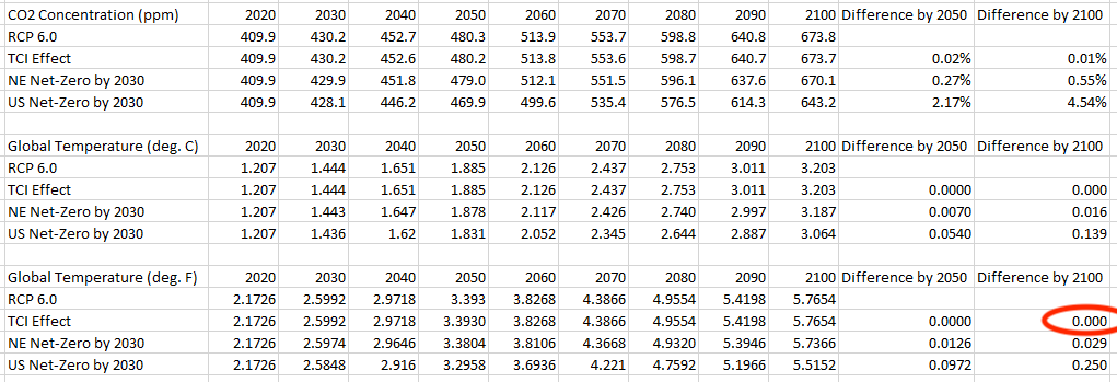 But the overall effect on the climate is too small to be measurable, according to climate modeling conducted by Brent Bennett Ph.D. of Life:Powered – the energy policy division of the Texas Public Policy Foundation. Texas is not part of the TCI compact.
