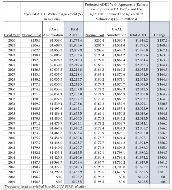 Before the market downturn due to the COVID-19 virus, SERS and OPEB payments for state employees were expected to rise to $2.4 billion by 2024, and payments for teacher pensions expected to climb to $1.6 billion.