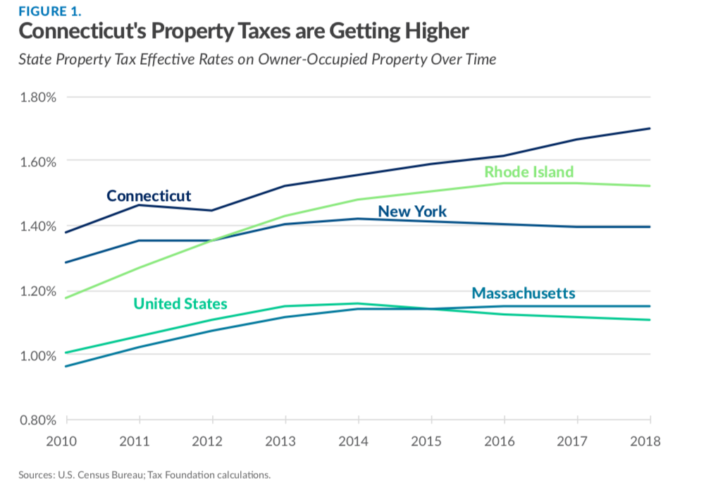 According to a 2020 study released by Yankee Institute and the Tax Foundation, Connecticut’s property tax rate is among the highest in the country and has continued to grow even as property values declined, outpacing all of its neighbors.