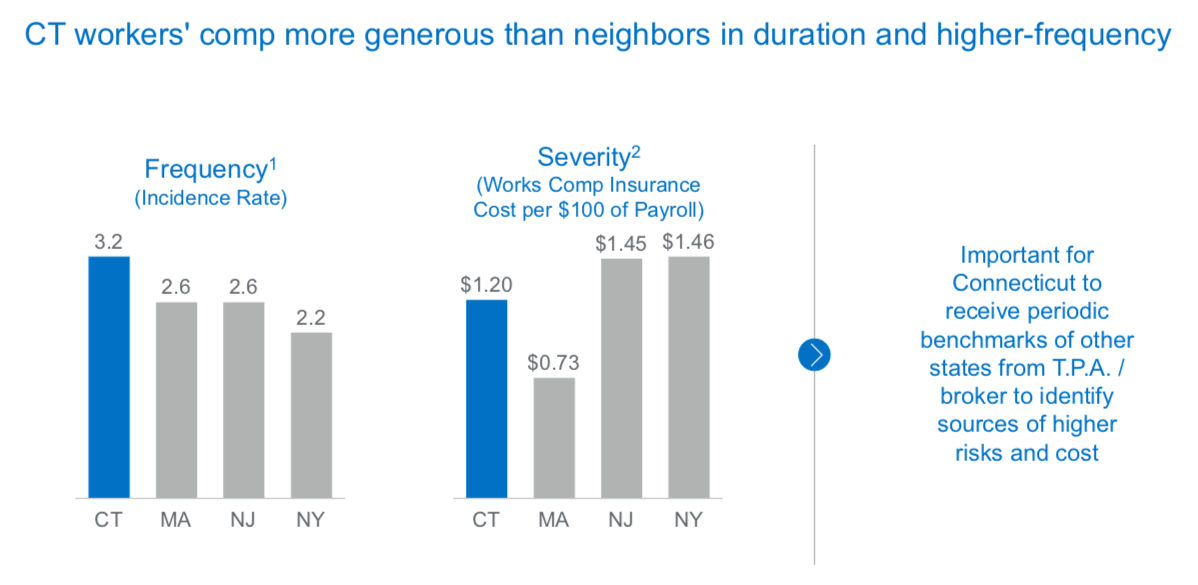 The report also found Connecticut’s workers compensation is “far more generous” than other states and Connecticut state employees use workers compensation at a higher rate than neighboring states.