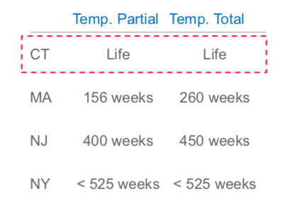 Seventy-six percent of worker compensation claims are for temporary disability, however under Connecticut statute, temporary disability benefits have no time limit, unlike Massachusetts, New York and New Jersey.