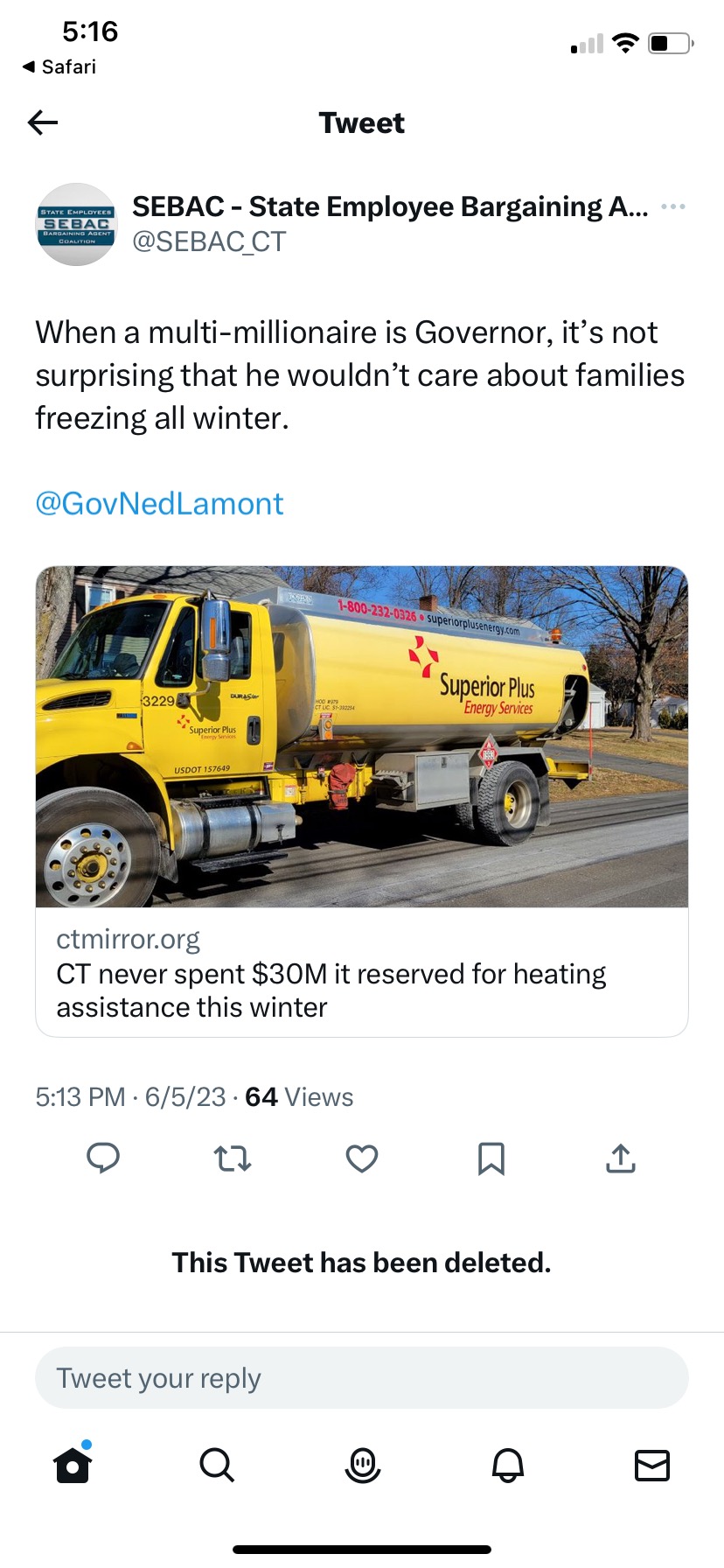 The State Employees Bargaining Agent Coalition (SEBAC) has taken to social media condemning Gov. Ned Lamont over various issues.