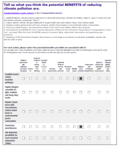 I began filling out the survey, which laid out what the 14 benefits could achieve. When asked to “tell us about how important these emissions reductions are to you” I prioritized “affording a reliable vehicle,” and “access to a good paying job” which to me are both more important than a “lack of trees that provide shade,” among other options. Of all of the “benefits,” I am most skeptical of the potential for this program to “reduce greenhouse gas emissions to warm the planet,” since Connecticut contributes a pittance to global emissions.